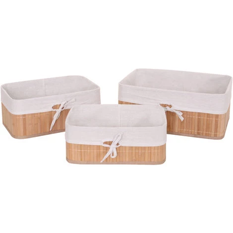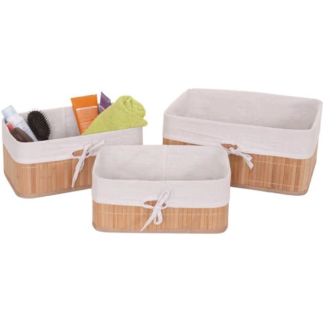 3x boîte de rangement HHG-220, bambou ~ nature