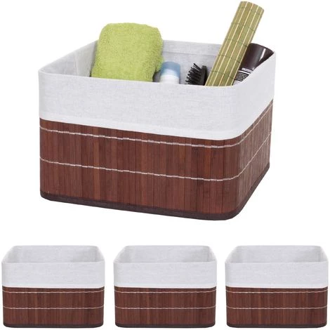 4x panier de rangement HHG-223, boîte de rangement, caisson de triage, bambou, marron