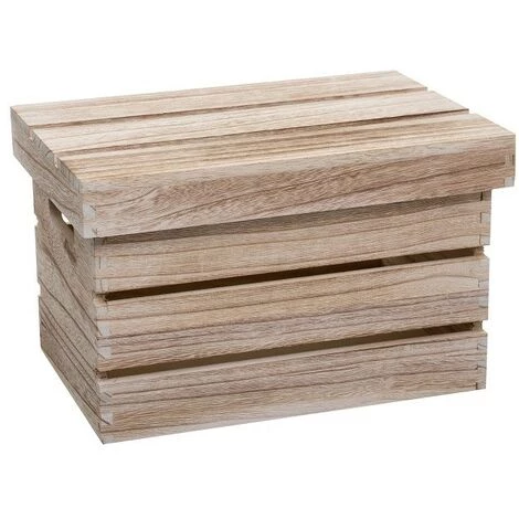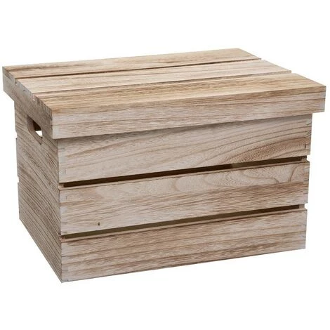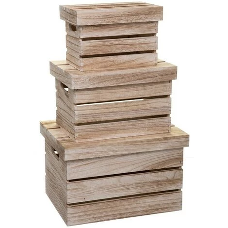 Boites cagettes en bois, vendues par lot de 3, chacune de dimensions différentes. Ranger en donnant du style à votre intérieur. En bois massif de paulownia, bois très léger. Livrées montées. Coloris naturel clair. En bois massif de paulownia. Dimensions de la grande boite 38x28x24 cm, de la boite moyenne 32x22x20 cm, de la petite boite 26x16x16 cm. Poids du lot 2.7 kg.