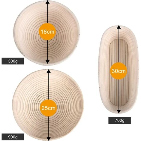 - Le banneton rond est approprié pour le pain rond et pour les pâtisseries, la forme ovale est adéquate pour les baguettesPour nettoyer le panier à pain, il suffit de tapoter ou de bien le brosser. Vous pouvez également l’essuyer avec un chiffon humide, puis le laisser sécher