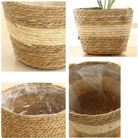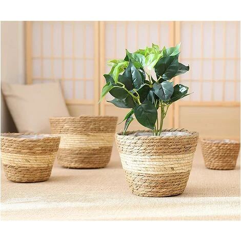 AIDUCHO Ensemble De 3 Paniers Tissés En Herbe, Pots De Plantes D’intérieur Pour La Décoration De Fleurs De Plantes D’intérieur, Panier De Rangement Pour Pot De Fleurs