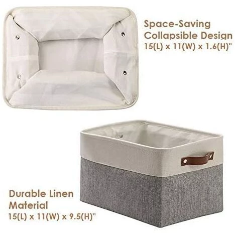 Robuste et durable – Panier de rangement fabriqué en toile attrayante avec doublure intérieure. Nos poubelles sont fabriquées en tissu Cationic, qui est plus robuste que le tissu polyester utilisé par beaucoup d’autres poubelles pliables. Beaucoup plus robuste, conserve sa forme lorsque vous êtes debout. Les poignées cousues le rendent facile à glisser et à sortir des étagères, sections, placards, ou le bureau. Nouvelle version avec support de base en MDF (panneau de fibres à densité moyenne) pour rendre les poubelles plus fermes. L’outil d’organisation parfait.