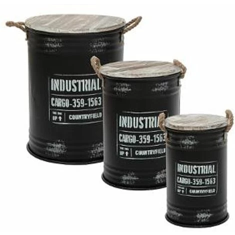 Atmosphera – Set De 3 Malles En Métal Zinc Et Bois Déco – Gris