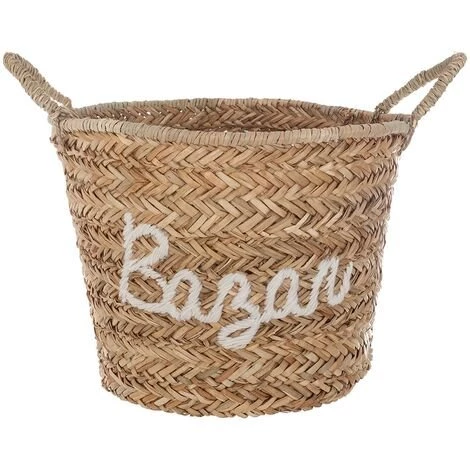 Créer une jolie décoration chic et tendance dans la maison grâce à ce panier en paille tressée avec broderie blanc. Marqué de l’inscription « Bazar », ce panier sera l’endroit idéal pour ranger les jouets de votre enfant.