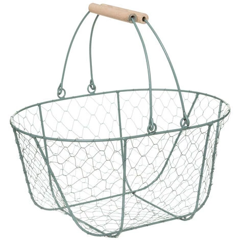 Atmosphera – Panier en métal de couleur (-) Dimension produit: L. 38 x P. 25 x H. 23 cm – Matière : Fer – (-) Modèle : Vert