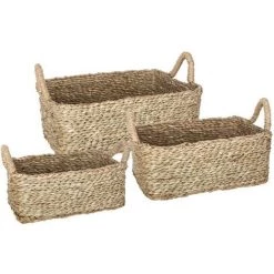 Atmosphera – Set de 3 Paniers de rangement rectangle en Osier (-) Dimensions : S : L. 28 x l. 16 x H. 11 cm – – Dimensions : M : L. 32 x l. 22 x H. 12 cm – – Dimensions : L : L. 36 x l. 26 x H. 13 cm – – Matière : Osier – (-) Modèle : Beige