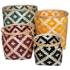 Atmosphera – Set de 4 Paniers de rangement multicolore en Bambou (-) Détail Dimensions : S : D. 22 x H. 18,5 cm –