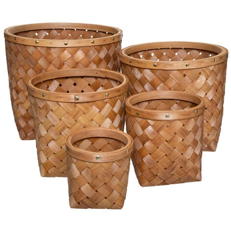 Atmosphera – Set de 5 Paniers de rangement rond en Bois Clair (-) Détail Dimensions : T1 : L. 37 x l. 36.5 x H. 30.5 cm – – Détail Dimensions : T2 : L. 32 x l. 31 x H. 28 cm – – Détail Dimensions : T3 : L. 27 X l. 26.5 x H. 24 cm – – Détail Dimensions : T4 : L. 21 x l. 20.5 x H. 20 cm – – Détail Dimensions : T5 : L. 16.5 x l. 16 x H. 15 cm – – Matière : Bois de Sapin – – Poids Produit : 1.9 kg -(-) Modèle : Marron caramel