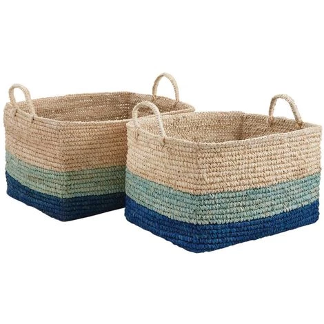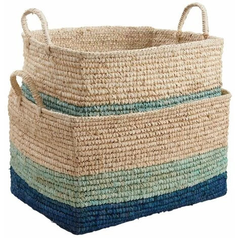 Lot de 2 corbeilles de rangement rectangulaires en jonc.