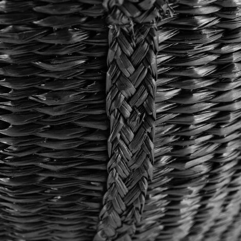 Lot de 2 corbeilles rondes en jonc teinté noir tissées à la main avec 2 anses