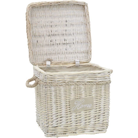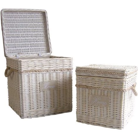 Malle carrée en osier blanchi et corde, doublure coton (Lot de 2)