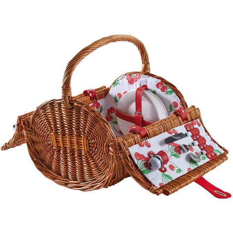Panier pique-nique rond en osier clair