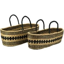Lot de 2 paniers de rangement en jonc naturel et teinté noir à motif ethnique