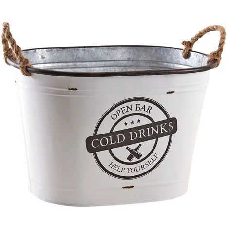 Rafraichisseur de boissons en métal laqué blanc – Cold drinks – avec poignées corde