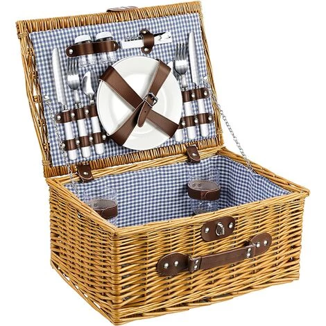 Cadeau romantique : le panier de pique-nique marron naturel avec doublure et ceinture à rayures bleues est très beau et élégant. Il convient comme cadeau pour votre amoureux. C’est un incontournable pour les activités de plein air!