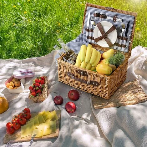 Contenu : ce n’est pas seulement un panier de pique-nique, il comprend 1 couverture de pique-nique, 2 couverts en acier inoxydable, 2 bouteilles d’assaisonnement, 2 assiettes, 2 verres, 2 serviettes et 1 tire-bouchon.
