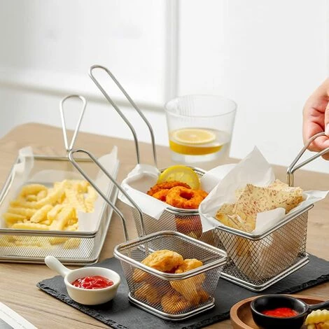 Ces friture paniers sont faits de matériaux de haute- qualité, sr et durable, et utiliser, lavable et réutilisable. Ces paniers peut être largement utilisé pour la friture de nombreux aliments et sont pratiques. Ces paniers peuvent être directement immergé dans la friteuse à créer la nourriture délicieuse.