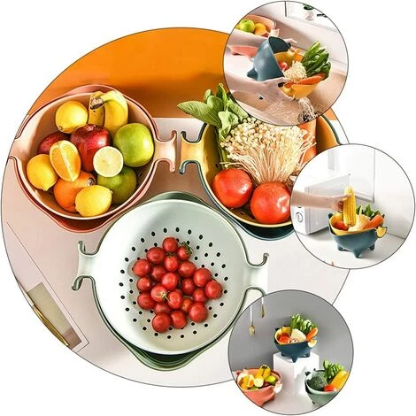 2 dans 1 Ensemble- Comprend passoire avec trous pour forcer & bowl pour retenir l’ eau et les liquides. Beaucoup plus pratique que seul bol ou une passoire. Ergonomique, design compact.