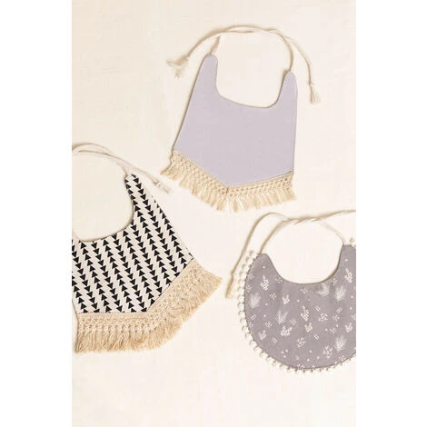 Avec un style bohème, suivant les dernières tendances, notre collection Buba Kids fera de votre bébé le plus fashion de l´endroit. Un accessoire basique et indispensable qui ne peut pas manquer dans notre maison. Plus besoin d’attendre que nos petits commencent à manger des aliments solides, notre bavoir Buba peut être un accessoire de plus dans votre garde-robe, il prévient des taches indésirables. Une collection de bavoirs aux formes et motifs différents, finis par des franges ou des pompons décoratifs tissés en 100% coton. Fini avec une corde pour faciliter l’enfilage et s’adapter à toutes les tailles.Pour un bon entretien, nous recommandons un programme de lavage court à une température ne dépassant pas 30º, en évitant l’utilisation de produits chimiques. Ne pas utiliser de sèche-linge. Dimensions (Hauteur x Largeur x Profondeur): 20 – 28,5 cm x 22,5 – 26 cm x cm IMPORTANT : Le service standard porte-à-porte ne comprend pas la livraison et la collecte des marchandises au domicile du client, qui sont à la charge de ce dernier. Il est possible que le livreur aide volontairement à la livraison de la marchandise (ceci est totalement volontaire pour le livreur et la société de transport et ne relève pas de la responsabilité de Sklum).L’assemblage n’est pas non plus inclus.