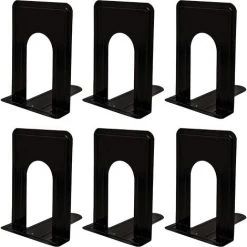 SERRE LIVRES DESIGN EN MÉTAL : Notre ensemble comprend 6 serre-livres (3 paires). Chaque serre-livres mesure H16,7 x L12,5 x l14,5 cm. La partie arrière mesure 11,5 cm de long. Il y a un trou à la base du bloc livre qui fait 4 mm de diamètre. Ils sont fabriqués en métal antirouille et qui ne se ternit pas. Le métal ne se plie pas, ne se casse pas et ne se raye pas. Ils ont une finition noire brillante.