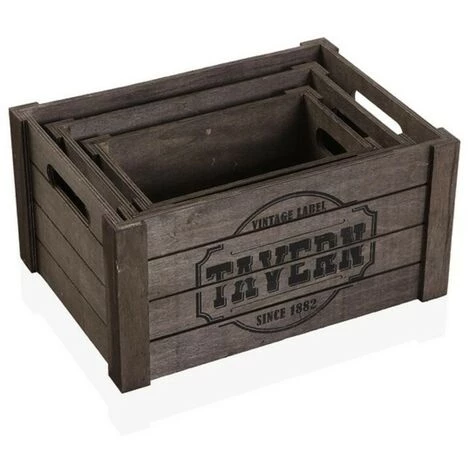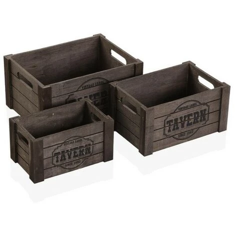 Si vous aimez prendre soin de chaque détail de votre maiosn et d’être à la dernière mode en matière de produits qui vous rendront la vie plus facile, achetez Set de boîtes décoratives Versa Tavern Vintage Bois (25 x 17 x 35 cm) (3 pcs) au meilleur prix.