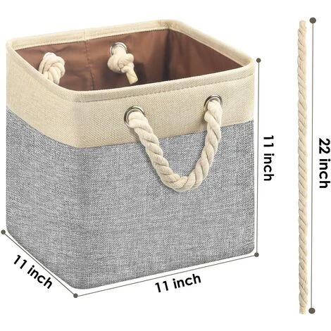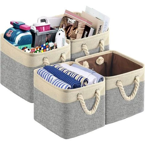 Pour vous apporter une grande commodité, les 4 paniers de rangement sont conçus. Le style simple et tendance conviendra parfaitement à votre pièce. Et vous pouvez les plier lorsque vous ne les utilisez pas. Fabriqués dans un tissu de haute qualité et équipés d’œillets en métal et de poignées en corde, les cubes de rangement dureront des années.