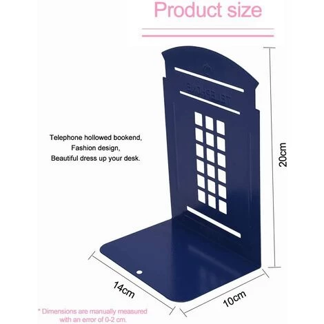 - CONCEPTION ATTENTIVE – Rembourré avec du caoutchouc sur le fond, placez-les directement sur votre étagère préférée, ils n’abîmeront pas du tout laSurface. Les coins légèrement arrondis, ne rayent pas vos doigts ou vos livresBELLES DÉCORATIONS – Vous obtiendrez un serre-livres vintage proche d’une authentique cabine téléphonique de Londres, une belle couche de pulvérisation avec une finition bleu brillant, peut bien décorer votre étagère