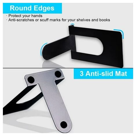 Tapis antidérapants3 coussinets en mousse antidérapants sur le fond ont aidé à maintenir les livres en place et ne rayeront pas vos meubles. Le fond antidérapant vous permet de retirer 1 article sans déplacer les autres.Surface lisse et bordsLes serre-livres sont couverts avec un optimum vernis de cuisson, rendez la surface lisse et plate, bords légèrement arrondis, cela ne vous fera pas mal aux mains et ne rayera pas votre bureau ou vos meubles. La forme DesignT flexible avec des angles de pente à 90 ° vous aide à conserver une grande capacité et une stabilité de livres épais. Plus, La conception autonome vous permet d’ajuster librement la distance entre les serre-livres en fonction de leur taille et de leur nombre. Construction métallique robuste Alors ne craignez qu’il ne se plie facilement comme les autres serre-livres de qualité inférieure. Gardez votre bureau et votre chambre bien rangésCDOFFICEHOMELIBRARYImmergez-vous dans le monde des livresPour tous les rats de bibliothèque ou les cinéphiles, il est important de garder notre espace de rangement agréable et organisé, ce qui peut vous faire gagner du temps pour rechercher des livres dans tout le fouillis et éviter de perdre ou d’égarer vos livres.Taille mini mais étude comme grande: L’acier inoxydable de qualité supérieure rend le serre-livres plus robuste et durable, pas facile à plier. Conception épaisse et petite taille parfait pour cahier et livre de cuisine. La conception des coins arrondis ne fait pas mal à votre main. Spray électrostatique de surface pour être plus robuste et durable. Serre-livres antidérapants: trois petites mousses au bas de chaque serre-livres, maintenez le serre-livres en métal en place, maintenez le livre debout sans glisser, ne rayera pas votre bureau et vos étagères. La conception en forme de T rend le serre-livres plus robuste, peut contenir plus de livres. Serre-livres fonctionnels: vous pouvez utiliser ce serre-livres robuste à la maison, à l’école, à la bibliothèque, en bureau ou étagère pour faire votre livre, magazines, CD, DVD, VIDEO, livre de cuisine et autres choses debout. Rendez votre pièce plus ordonnée : ce serre-livres est en film et petit, n’ajoutera pas de volume visible à votre bureau ou vos étagères. Parfait pour tenir le livre debout et classer un livre différent, alors vous pouvez trouver le livre que vous voulez facilement. Service client à vie: Si vous n’êtes pas satisfait de nos serre-livres robustes, contactez simplement notre équipe de service client amicale et nous vous rembourserons intégralement ou gratuitement remplacement.• Serre-livres, serre-livres robustes en métal pour étagères, support de livre antidérapant haut de gamme pour livres, DVD, jeux vidéo, magazine noir 2,5 x 3,7 x 4,9 pouces (noir, 4 paires/8 pièces)