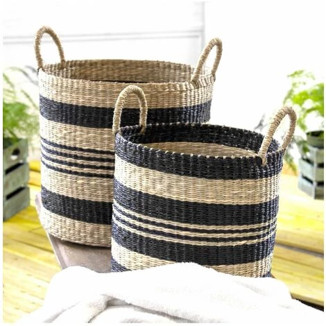 - Notre lot de 2 paniers en jonc de mer est bicolore naturel et noir. les 2 paniers en jonc de mer possèdent 2 poignets.