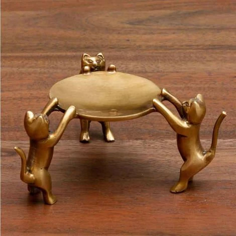 Contempler ce très joli vide poche en Laiton de chez Chehoma, reposant sur 3 chats d’une superbe couleur dorée, se dressant debout ! Déposez-le sur la console de votre entrée. Vous allez aimer sa couleur dorée, qui vas Apportez une décoration féline supplémentaire et originale à votre salon !