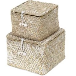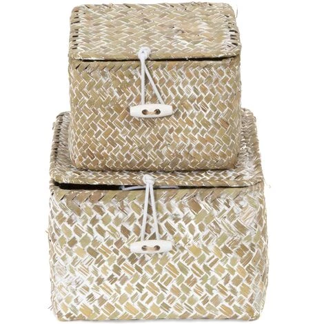 Ces 2 boîtes carrées avec couvercle fermé par bouton en bois vous permettront de ranger clés, bijoux, maquillage et tout ce que vous voulez protéger ou dissimuler. Pratiques dans l’entrée, la chambre ou la salle de bain, elles vous aideront à ranger de façon naturelle les objets qui ont tendance à s’éparpiller dans la maison.