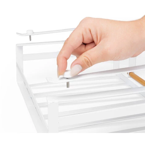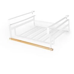 Ce panier se glisse sous n’importe quelle étagère et vous fait gagner un espace rangement supplémentaire dans les placards. Pas besoin de savoir bricoler, il se fixe d’un geste, il suffit juste de le faire coulisser. C’est pratique pour ranger les foulards, les sous-vêtements et les accessoires et pour exploiter au maximum l’espace entre les tablettes, surtout si celles-ci sont très espacées.