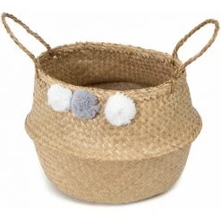 Coup de cœur pour ce panier Belly et ses jolis pompons ! Cousin germain du panier Belly qui est devenu un must de la déco, celui-ci a gardé tous les atouts du Belly que l’on connaît : sa souplesse, sa forme ronde et généreuse comme ses proportions pratiques pour ranger la maison : les jouets dans la chambre des enfants, les bonnets, les écharpes et les gants dans l’entrée… Vous trouverez mille façons de l’utiliser. Comme il est souple, vous pouvez même le replier et le transformer en corbeille. Pour vos plantes, c’est aussi le cache-pot idéal si vous prenez la précaution de le garnir de plastique à l’intérieur.