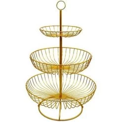 Corbeille à Fruits à Trois Niveaux En Métal Pour Comptoir De Rangement Domestique Golden- Thsinde