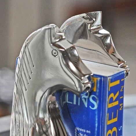 Sublime serre livre fantaisie avec cette tête de cheval à la finition nickel argenté.