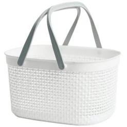 Panier de bain Portable salle de bain panier de rangement panier de bain articles de toilette bain bleu rotin panier de rangement blanc + gris 2 pcs