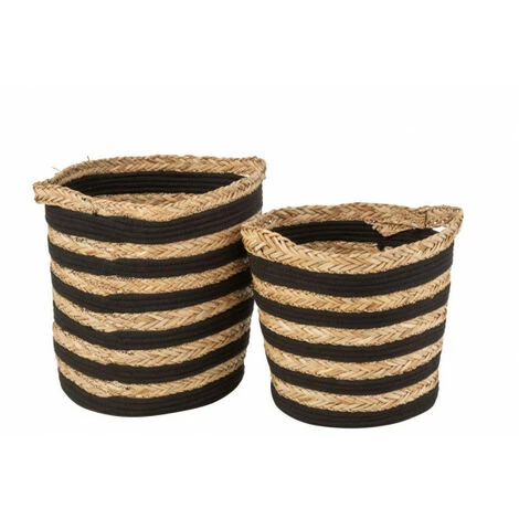 Set De 2 Paniers RayŽs Herbe/Coton Naturel/Noir