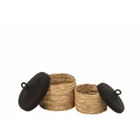 Set De 2 Paniers Ronds Avec Couvercle Herbe/Coton Naturel/Rose