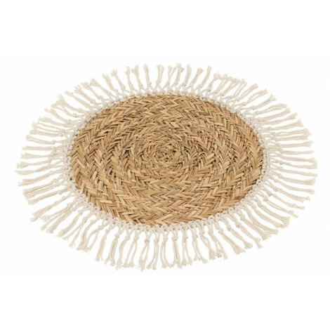 Sous-Plat Rond Herbe-Coton Naturel/Blanc