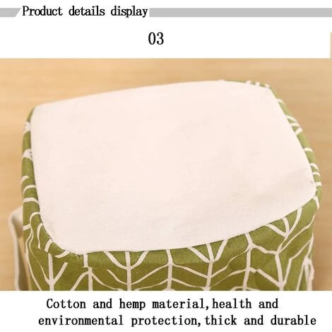 Descriptioin du produit : Avec un design Ă la fois moderne et Ă©lĂ©gant, deux poignĂ©es, il est facile Ă emporter. Nos paniers de rangement revĂŞtent un caractère fonctionnel et dĂ©coratif. Les paniers sont très pratiques pour le rangement, mais sont aussi très dĂ©coratifs. Le produit est en 100% coton et lin naturel, sans danger, biodĂ©gradable et respectueux de l’environnement. Dimensions approximatives :20 x 16 x 13cm Boites parfaites, belle couleur, et s’adapte bien Ă une chambre d’enfant: Paquet:4 x boĂ®te de rangement