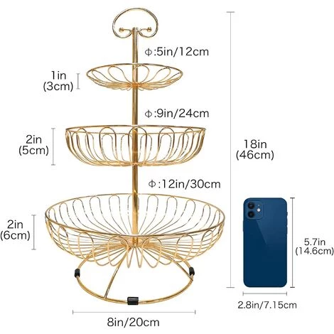 【Grande Capacité. 】La corbeille à fruits a trois étages et le diamètre de chaque panier est respectivement de 30cm, 24cm et 12cm. La corbeille à 3 étages vous permet de contenir plus de fruits et de légumes ainsi qu’ils sont bien rangés dans un panier au lieu d’entasser dans le coin de votre cuisine. Une coupe de fruits vous apportera une cuisine propre.