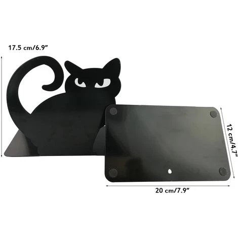 DEVENIRRICHE Mignon Vivid Belle Chat Persan Épaississement Antidérapant Fer En Métal Serre-Livres Organisateur De Livre Pour Bibliothèque École Bureau Étude À Domicile Bureau Organisateur Parfait Cadeau De Fête Des Mères (Noir)