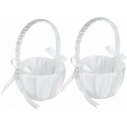 DONTODENT Paquet De 2 Paniers De Fleurs En Satin Wed Ding, Panier De Fleurs De Rose De Fête Bowknot
