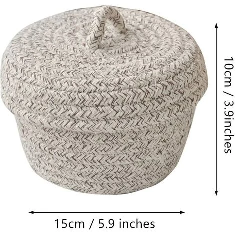 La corde en coton est tissée serrée, ce qui la rend suffisamment durable et reprend rapidement sa forme en remplissant les articles même lorsque des bosses ou des plis se produisent à leur arrivée. Le panier est livré avec un couvercle pour éviter la poussière.