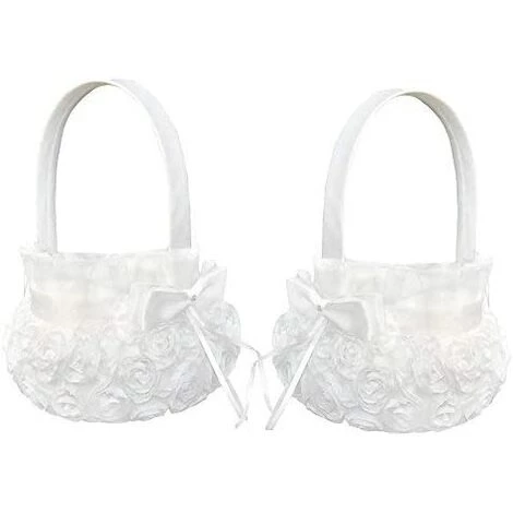 EINEMGELD Lot De 2 paniers à Fleurs Romantiques En Satin Avec Nœud Papillon Pour Mariages Et Cérémonies 13 cm