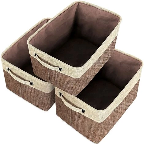 EINEMGELD Lot De 3 Paniers De Rangement Pliable En Tissu, Boîte De Rangement Cube En Jute Avec Poignée De Transport En Coton, Pour Vêtements, Sous-vêtements, Livres, Jouets, Panier De Bureaus, Marron & Beige
