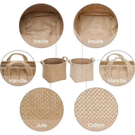 EINEMGELD Organizer Box Bins In Jute And Cotton Linen Pliable With Handle Decorative For Home Toiletry Stationery Sundries Toys Jewerly Color Beige 14 * 17 * 16CM 2PCS