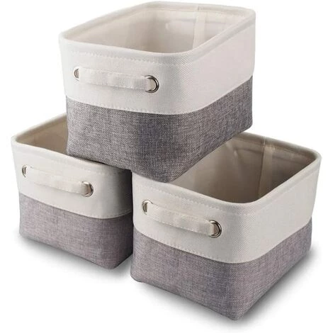 EINEMGELD Petite Panier De Rangement Lot De 3, Boites De Rangement En Tissu Avec Poignée Pour Étagères, Placard, Jouets (Pliable, Gris Blanc)