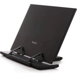 Une version métallique de support de lecture. Aussi compatible avec tous les types de livre, livre de cuisine, magazine, ou encore tablette. Ce support comporte une partie dorsale en métal solide et une base en plastique, le tout dans une couleur noire sobre qui s’harmonise facilement avec son environement.