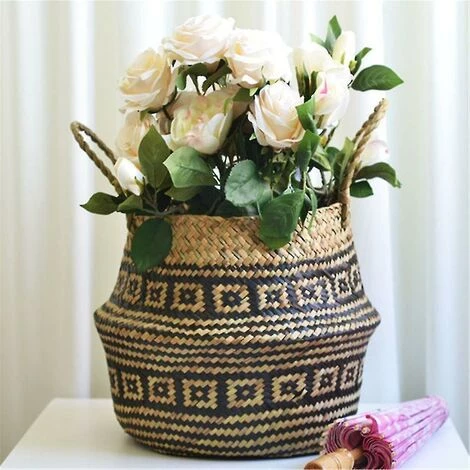 Seagrass Wicker Basket Flower Pot Folding Basket Dirty Basket Storage Decoration